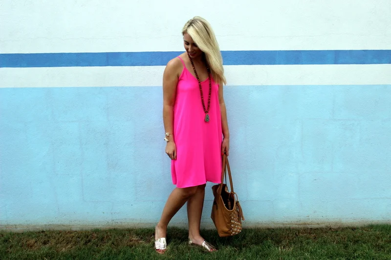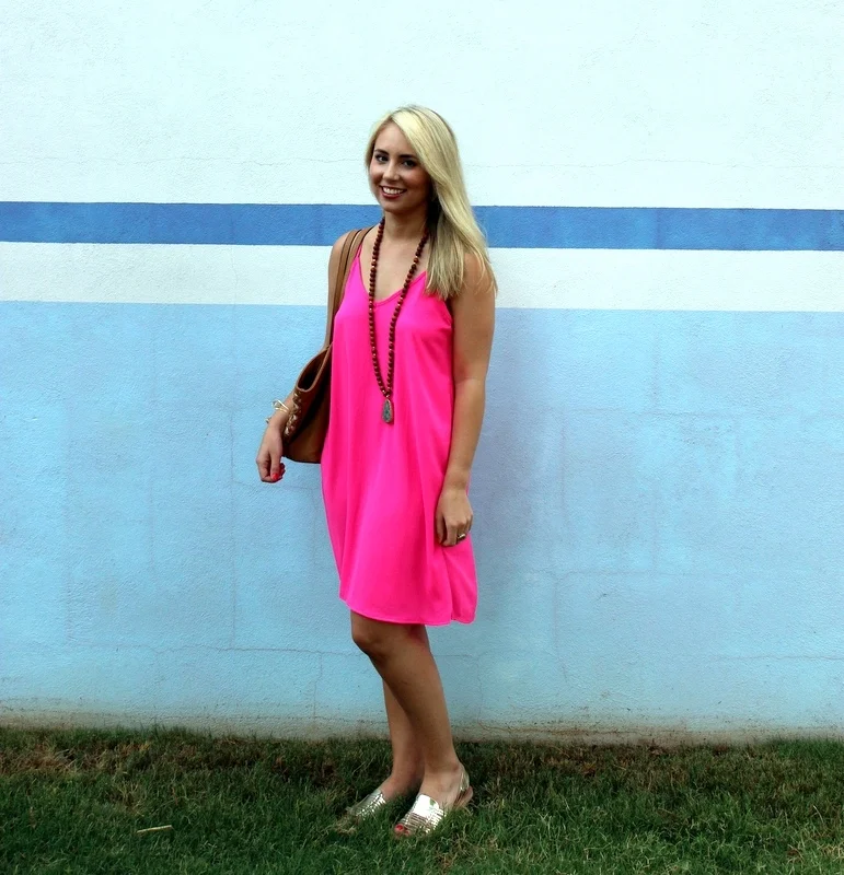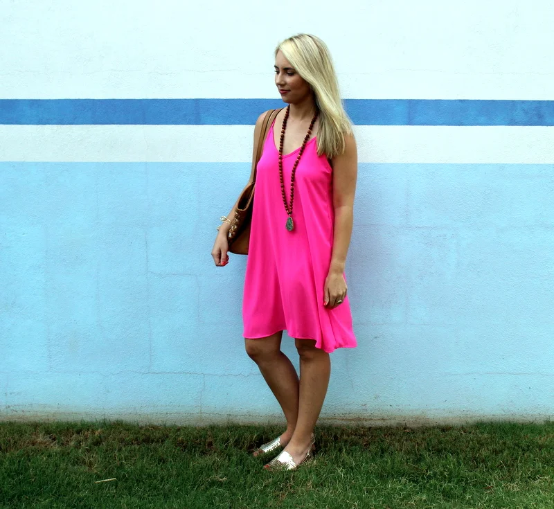 Fancy Friday is back with my first purchase from Rolling Runway! I'm a pink girl and I always have been, but I think pink looks so good on everyone during the summer. Especially bright pink! (But if you're not into pink, we also have it in black!) I wore it with my favorite SoulPepper necklace and new gold flats and it was the perfect outfit for work & then dinner. I have a feeling I'm going to be wearing this dress a lot this summer!