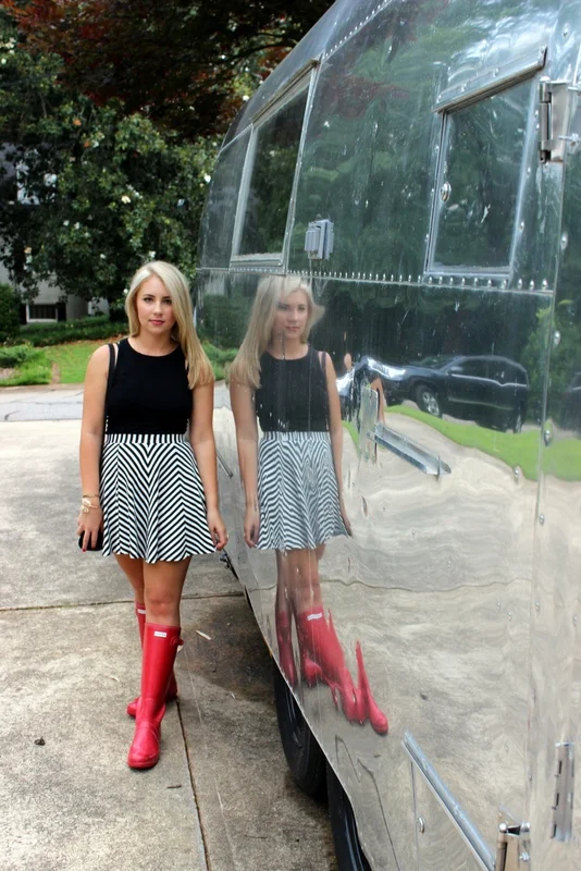 I bought this skirt this week when I was at TJ Maxx randomly and since I have been seeing black and white stripes everywhere {aka pinterest & instagram} I had to have it! I loved wearing my rain boots with it and Silvia makes them look even brighter!